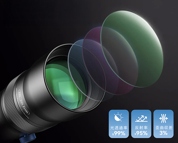 - レンズ構成:10群13枚、、広帯域マルチレイヤーコーティング