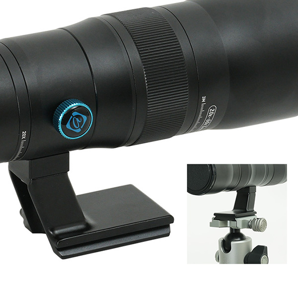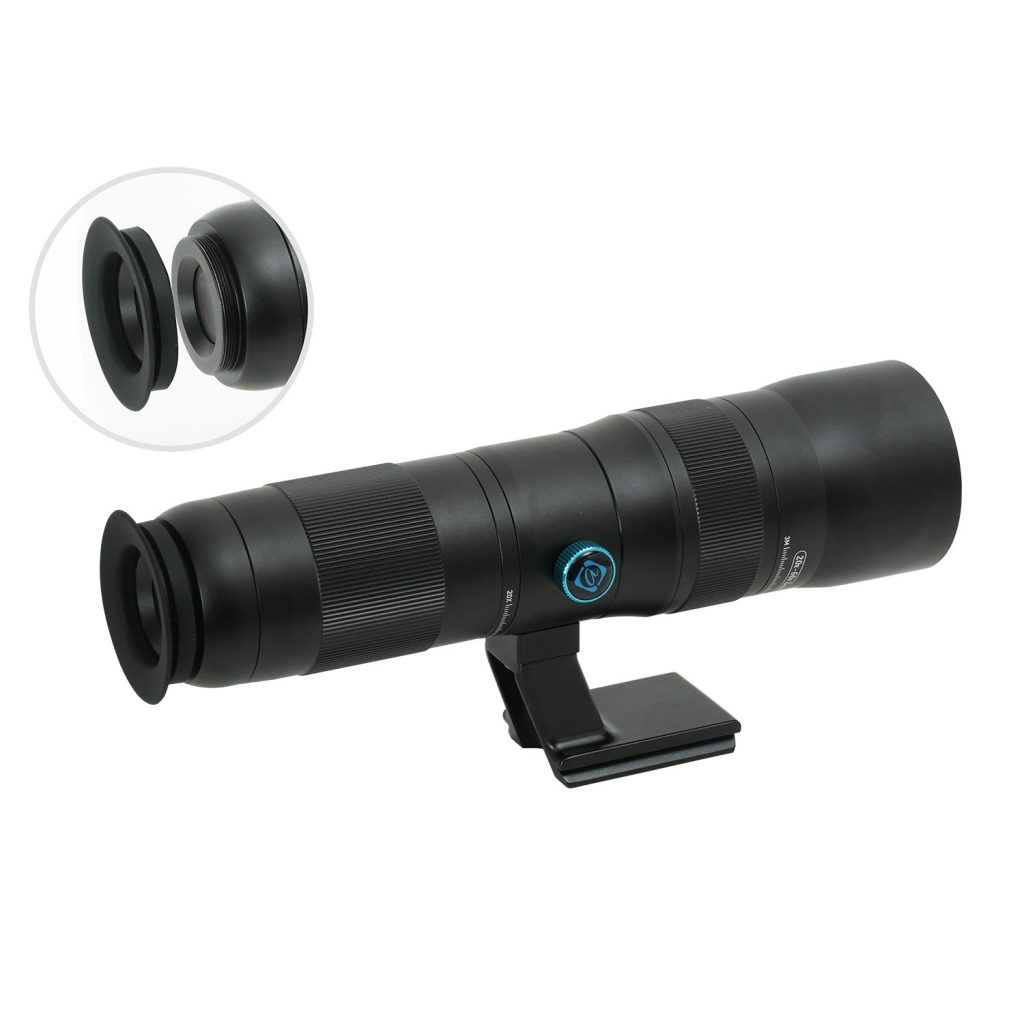 APL-T20-60Xは、スマートフォンに取り付けることで20倍から60倍までの光学ズームを可能にする望遠レンズです。安定した撮影に役立つ伸縮式の三脚が付属。また、付属のアイカップを取り付けて単眼鏡としても活用できます。