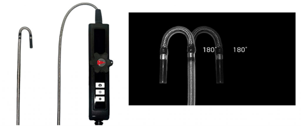 プローブ先端が2方向に湾曲し、検査対象物への挿入がスムーズに行えます。湾曲角度は最大180°となり、後方部の観察が可能です。